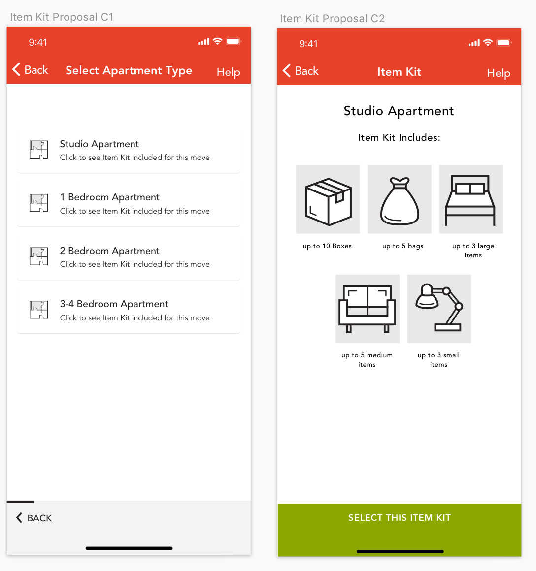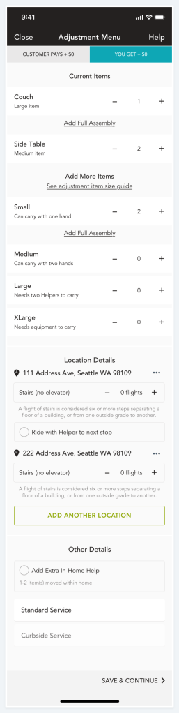 Goal: Design a “flat rate” experience where the customer can pay a flat fee for a full apartment move depending on the size of their apartment.