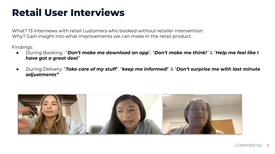 Goal: Interview some customers that have used our app for a retail delivery to understand more and unlock insights.