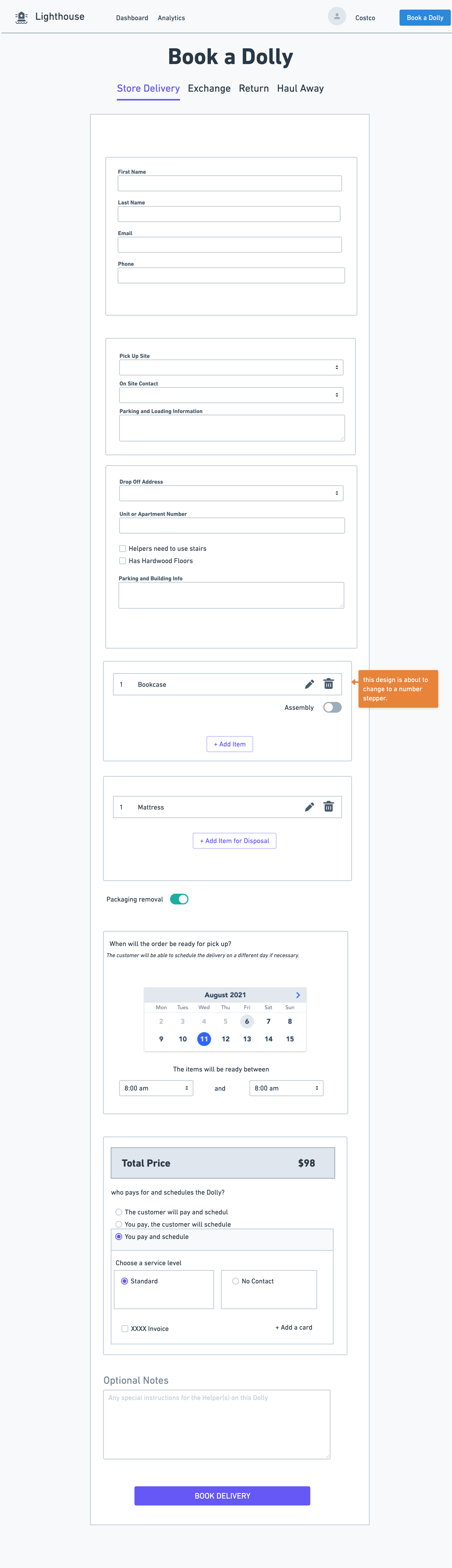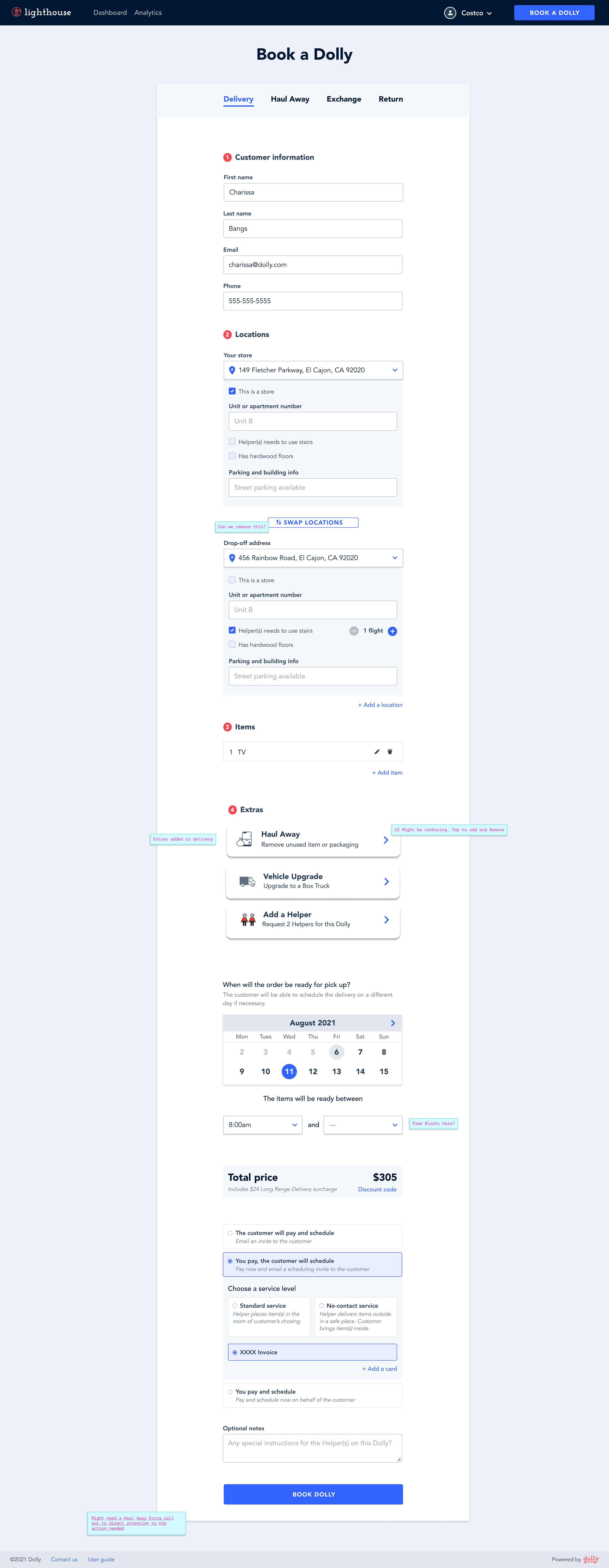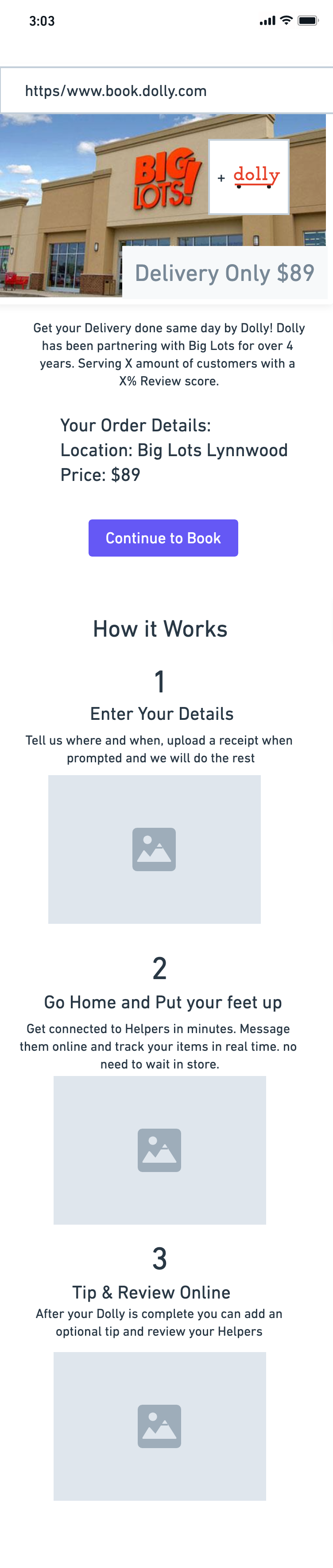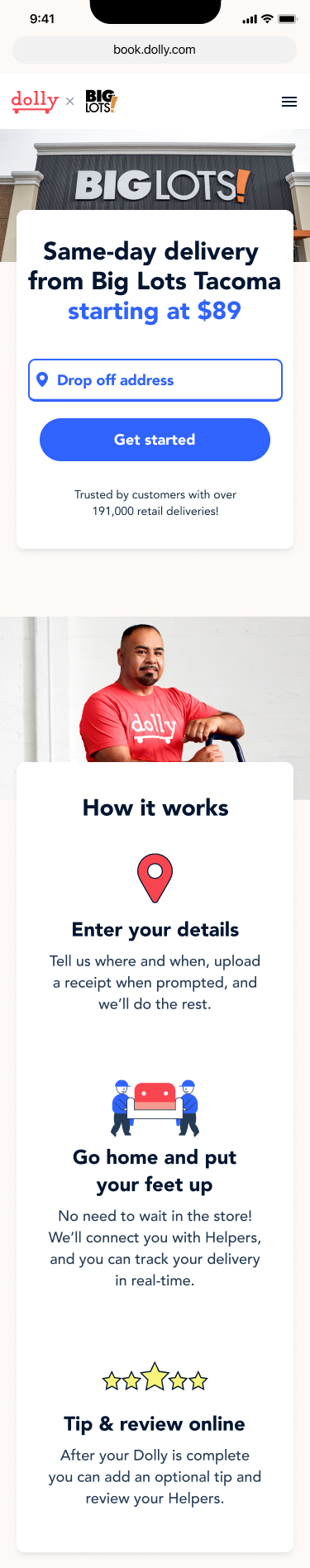 Opportunity: Dolly is missing out as retail shoppers might not be aware that delivery is available and/or affordable. They want delivery to be easy to set up, with no app download with an interface that they trust.